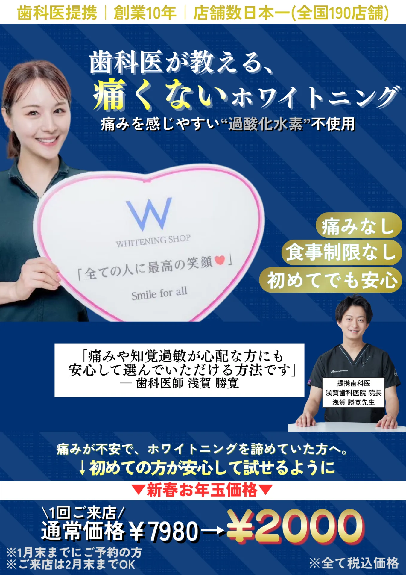 全国190店舗以上を展開する専門ブランドとして、創業10年の実績と歯科医提携による安心感を大切にしています。