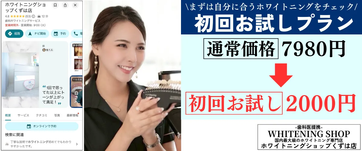 ホワイトニングショップくずは店へ